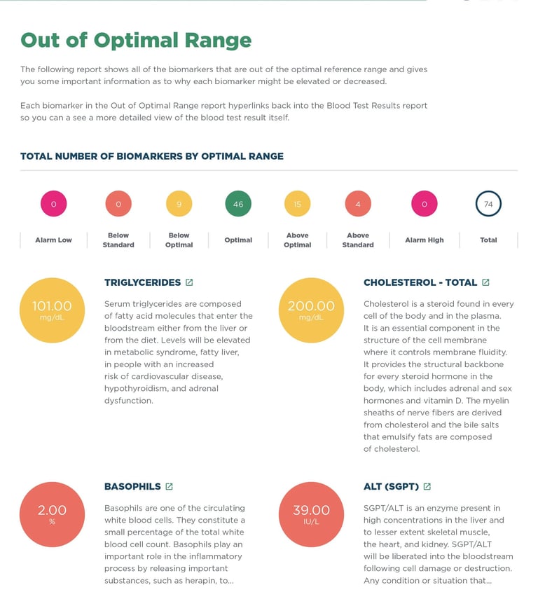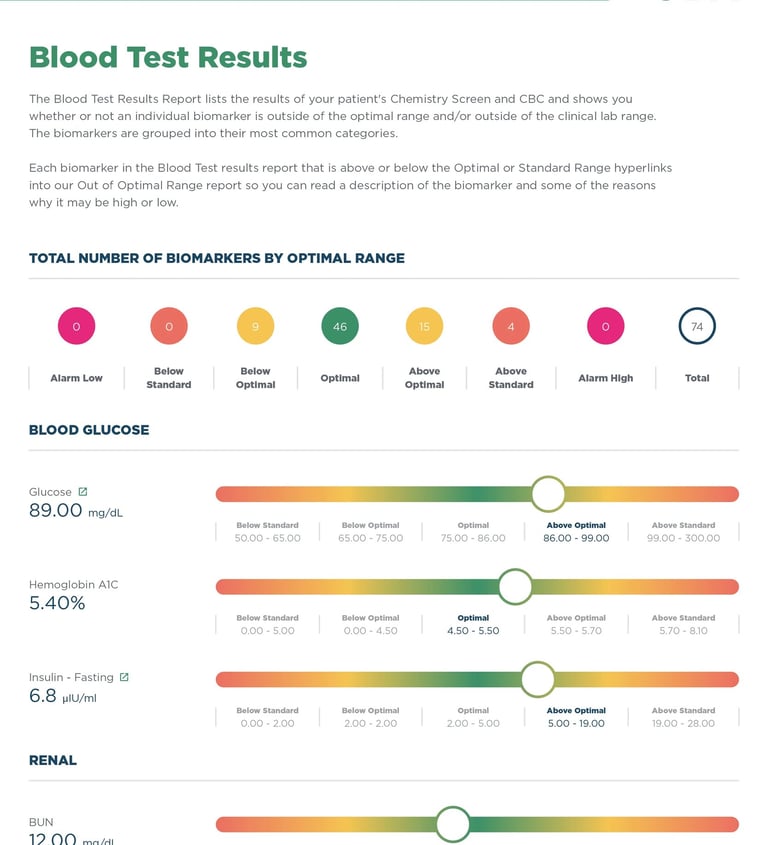 Funksjonell naturopatisk analyse av dine blodprøvesvar, fra et forebyggende og ernæringsmessig perspektiv.