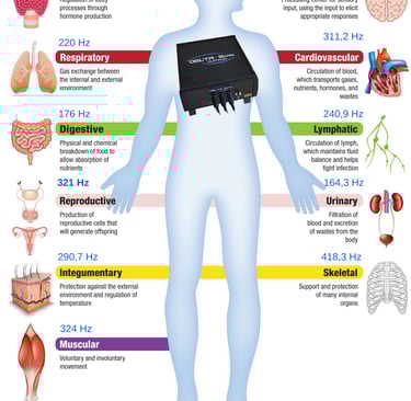I følge Albert Einstein er masse og energi ekvivalente og dermed er alt energi. Siden materie er kondensert energi og det er ingen materie som ikke vibrerer, har hver energi også en vibrasjon.Einsteins berømte utsagn: "Alt vibrerer" er universelt gyldig. Hele universet vibrerer. Hver kropp, hvert organ, hver celle, men også hvert patogen og ethvert stoff har et typisk spekter av svært spesifikke frekvenser. Dette omtales også som et karakteristisk frekvensmønster.Hvis alt vibrerer, bør det også være mulig for en vibrasjon å påvirke en annen vibrasjon.Årene med forskning av den japanske Dr. Masaru Emoto kan gjøre dette klart. Med sitt arbeid kunne han vise at kvaliteten på vann kan endres med musikk, ord og bilder. Ved å gjøre det etablerte han forbindelser til formen på de respektive iskrystallene. I følge hans teori danner vann som er fylt i et kar merket med positive meldinger alltid perfekte iskrystaller. Vann som kom fra flasker med negative meldinger fikk ufullkomne krystallformer.Hvis du tenker på at den menneskelige organismen består av opptil 80 % vann, kan du lett forestille deg at visse frekvenser kan påvirke den sunne balansen i kroppen. Men hvordan fungerer det?