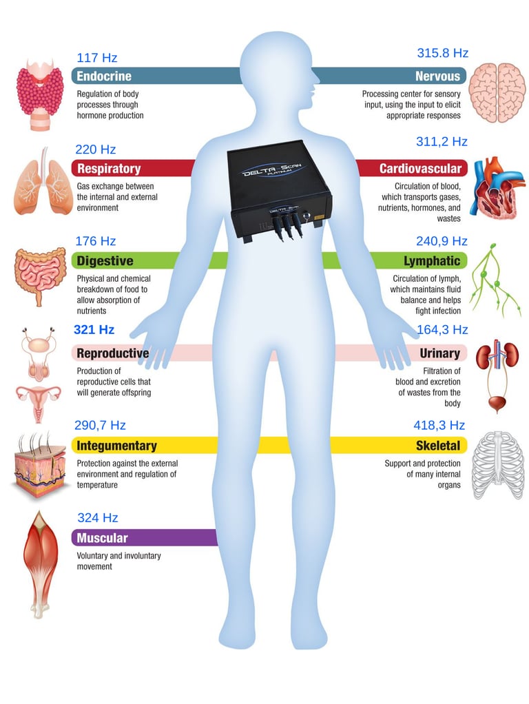I vår klinikk-praksis har vi i flere 10år år jobbet med ulike bioresonans-apparater. Det vi nå benytter er Delta-scan systemet (ikke-lineær systemanalyse, NLS) og etter vår lange erfaring vist enestående nøyaktighet. Hver celle er omgitt av et felt som kan registreres og vises ved hjelp av enheten. Et forstyrret felt blir deretter sammenlignet med en sunn virtuell sammenligningstilfelle. De to kurvene skal da løpe så synkront som mulig. Avvik indikerer disharmoni og dermed en forstyrrelse. Hver matvare, medisin eller bakterie inneholder informasjon som kan endre vibrasjonsfeltet. Terapeutens mål er å identifisere de respektive forstyrrende faktorene, invertere dem og harmonisere kurvene. Frekvensene som er funnet kan også overføres tilbak til pasienten ved hjelp av behandling med Delta-Scan enheten. Globuler eller væsker kan også «programmeres» med informasjon som pasienten mottar. På denne måten tilbakekalles informasjonen daglig og sjansen for gjenoppretting økes.